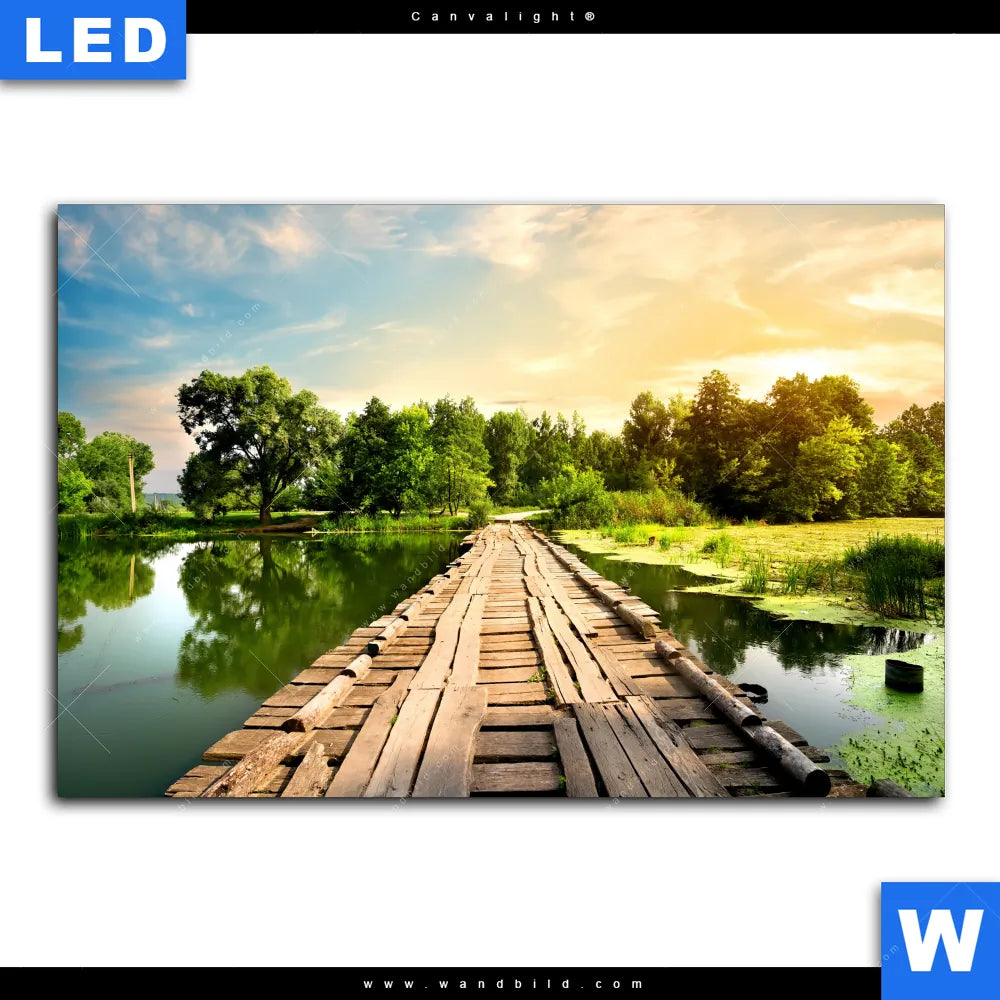 Canvalight® Leuchtbild | Alte Brücke am Fluss | Querformat
