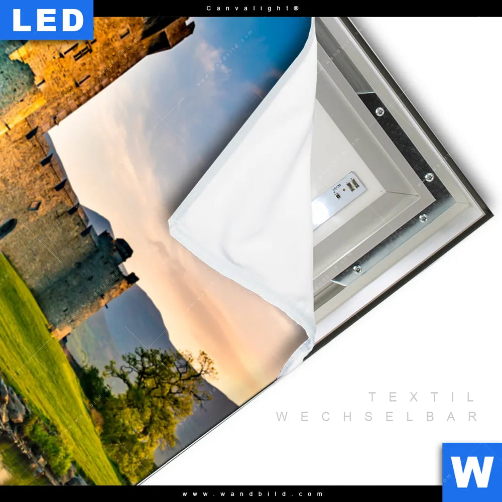 LED-Textilrahmen-Bild mit austauschbarem Architektur - Gebäude, Landschaften Textil-Druck (Wechselbild)