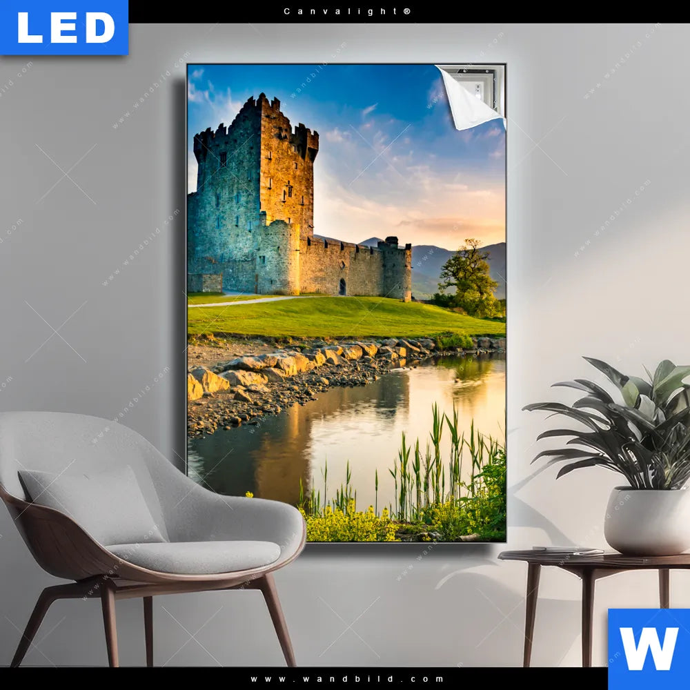 Canvalight® Leuchtbild | Alte Burg mit See | Hochformat