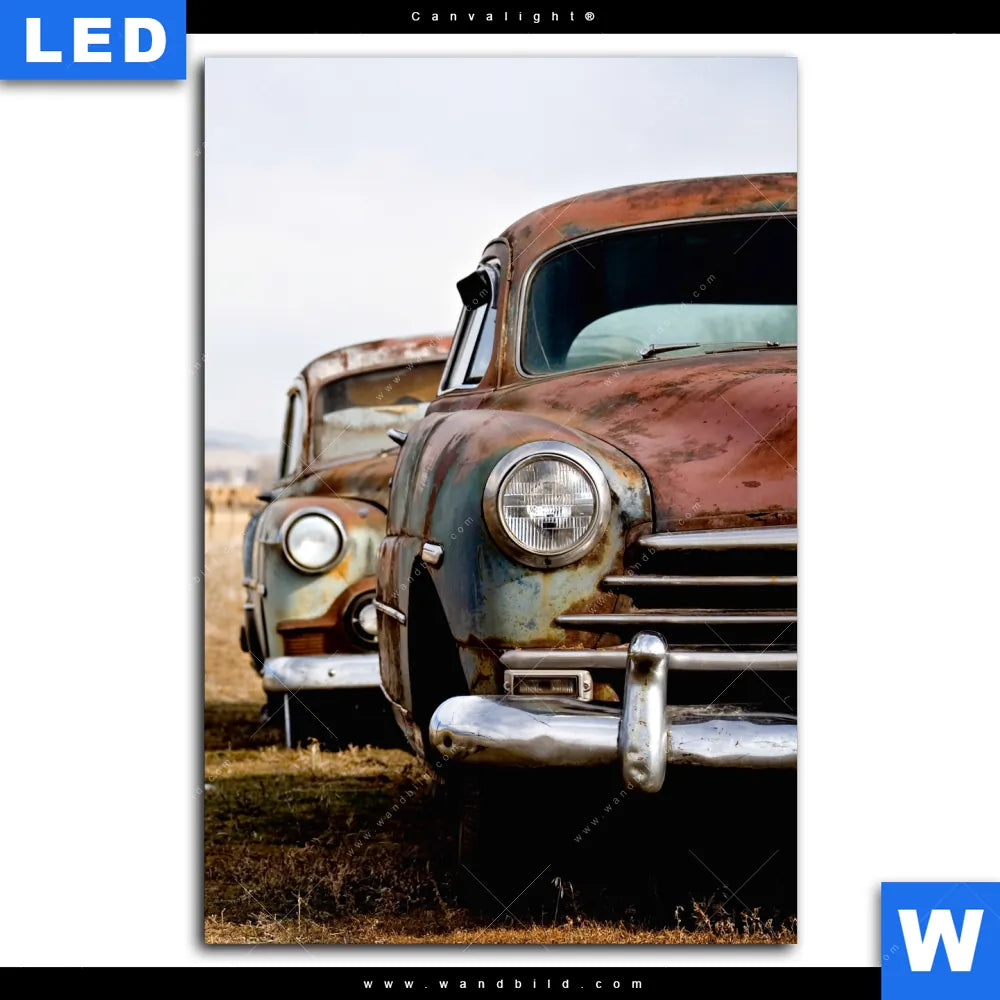 Canvalight® Leuchtbild | Alte rostige Autos | Hochformat