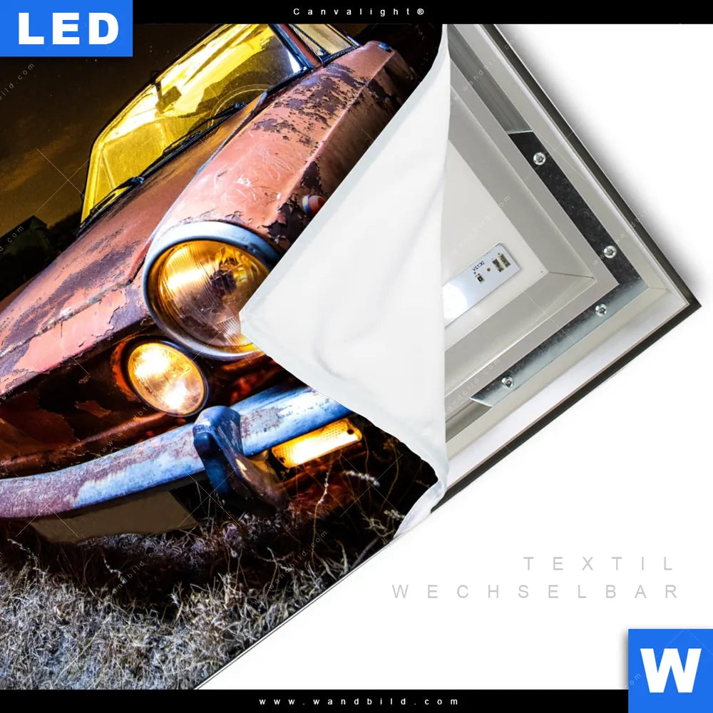 Canvalight® TEX Leuchtbild | Altes Auto | Quadrat