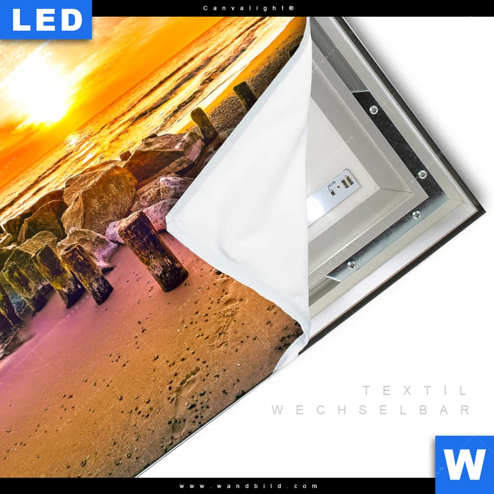 LED-Textilrahmen-Bild mit austauschbarem Landschaften, Strand - Meer Textil-Druck (Wechselbild)