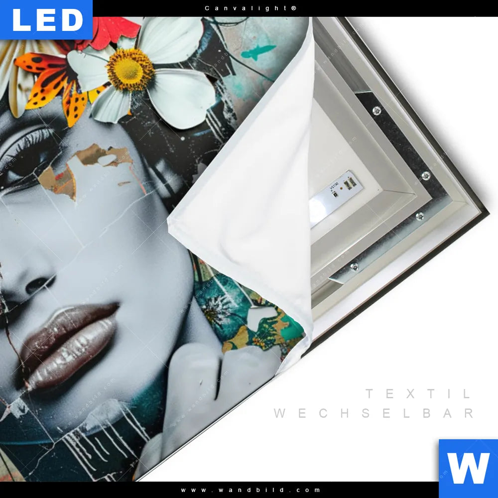 LED-Textilrahmen-Bild mit austauschbarem Blumen - Botanik, Porträts - Menschen Textil-Druck (Wechselbild)