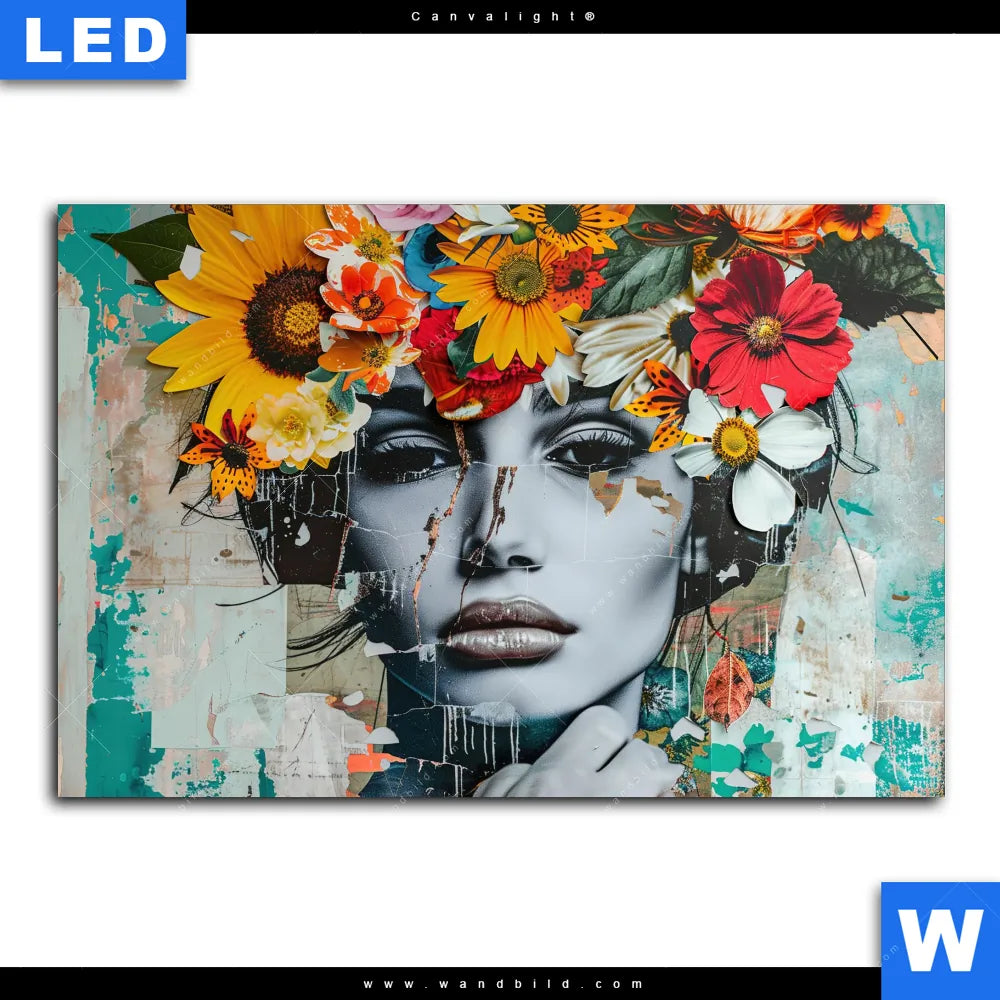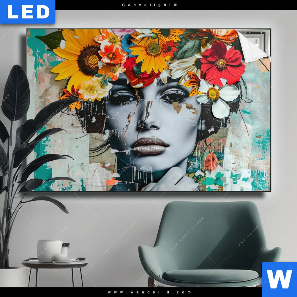 Canvalight® TEX Leuchtbild | Angelina - Frau mit Blumen im Haar | Querformat