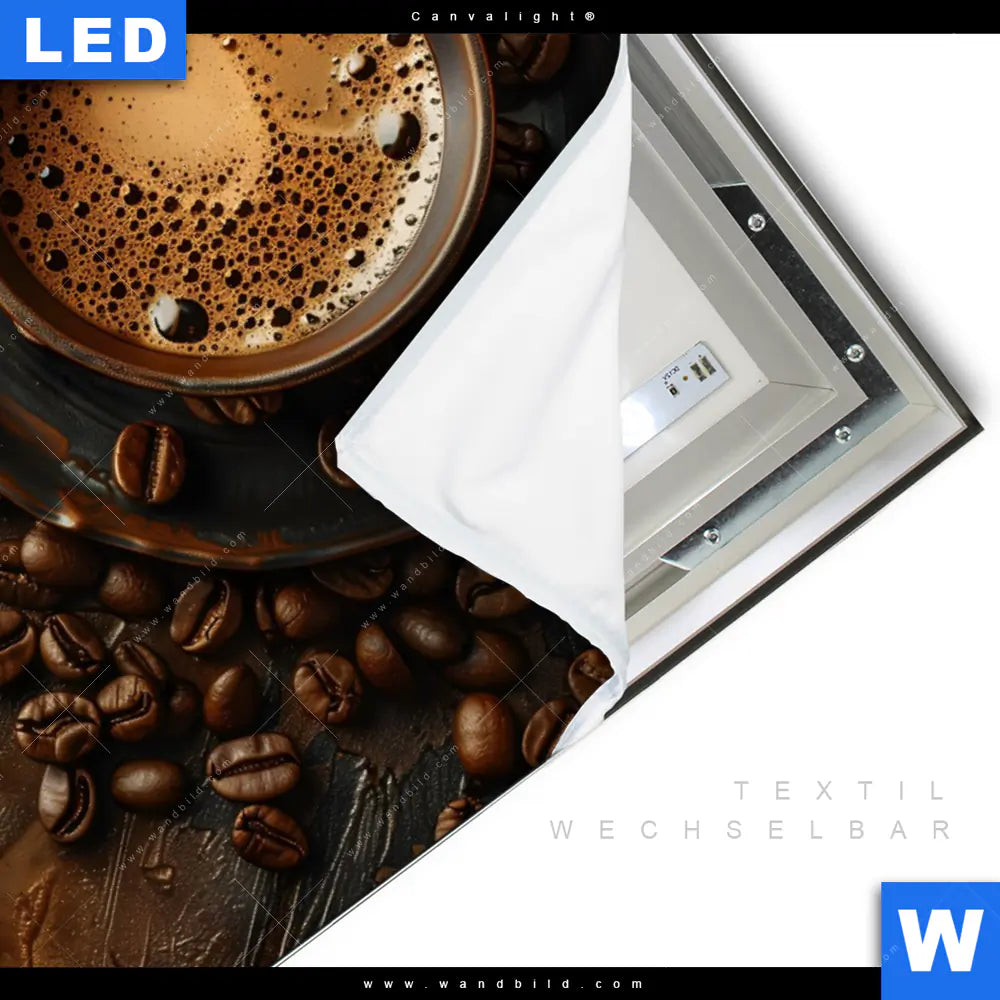 Canvalight® TEX Leuchtbild | Aromatischer Kaffeetraum | Querformat