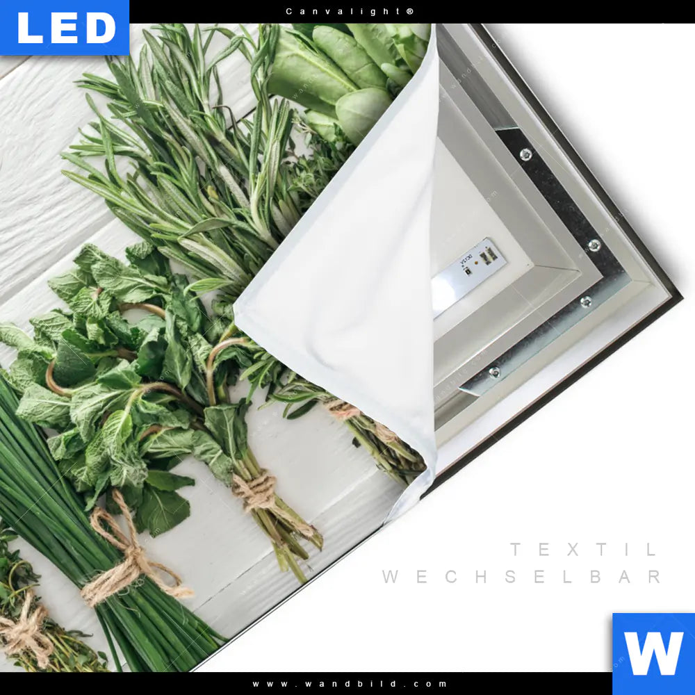 Canvalight® TEX Leuchtbild | Aromen der grünen Küche | Quadrat