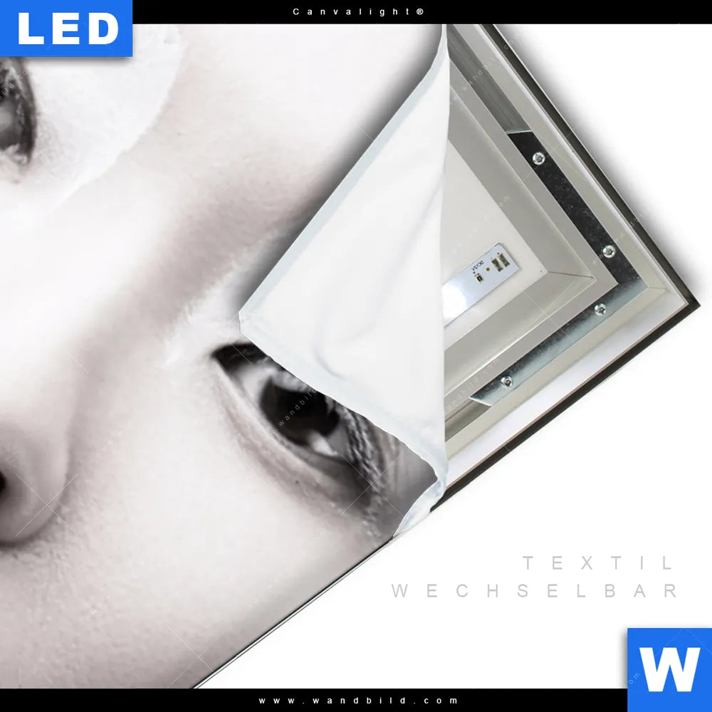 LED-Textilrahmen-Bild mit austauschbarem Porträts - Menschen Textil-Druck (Wechselbild)