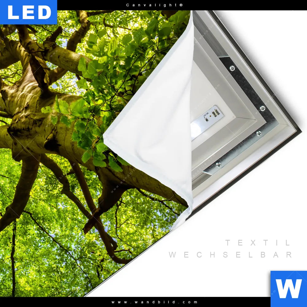 LED-Textilrahmen-Bild mit austauschbarem Landschaften, Wald - Bäume Textil-Druck (Wechselbild)