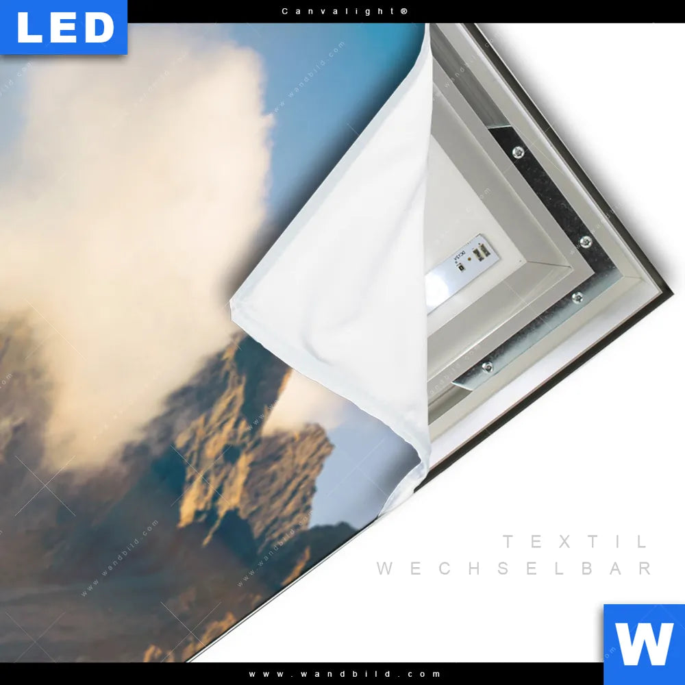 LED-Textilrahmen-Bild mit austauschbarem Landschaften Textil-Druck (Wechselbild)