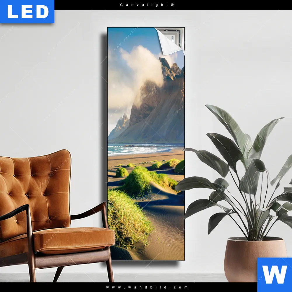 Canvalight® TEX Leuchtbild | Beeindruckendes Island | Schmal