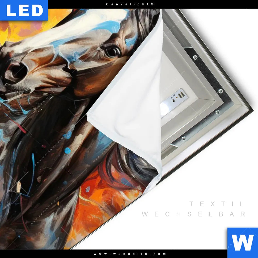 Canvalight® TEX Leuchtbild | Bella - Abstraktes Pferdeporträt | Hochformat
