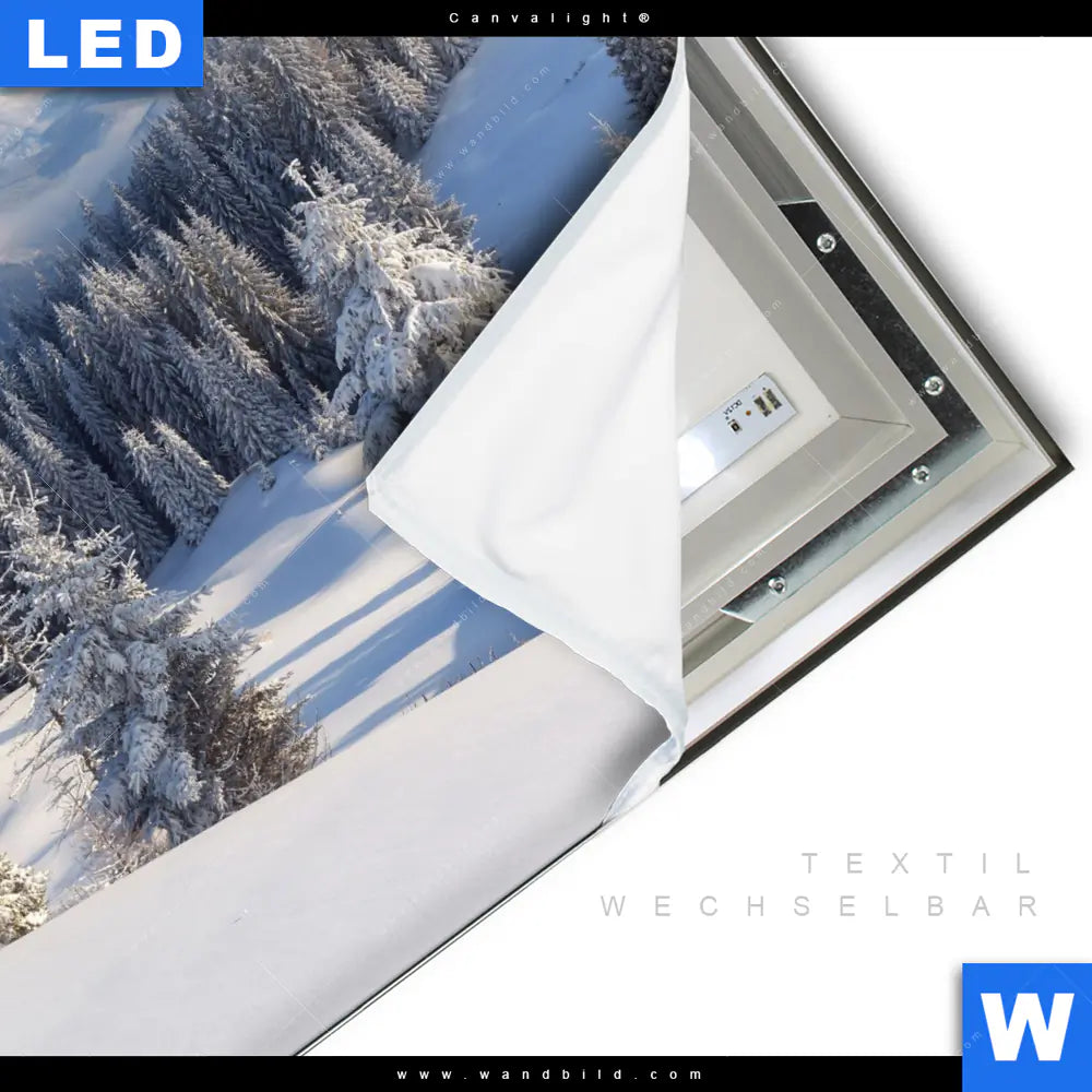 LED-Textilrahmen-Bild mit austauschbarem Landschaften, Winter Textil-Druck (Wechselbild)