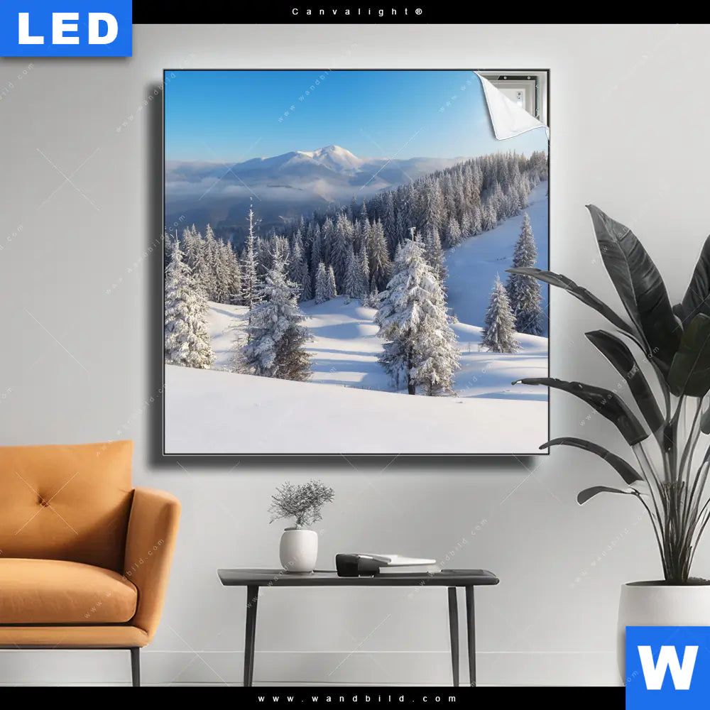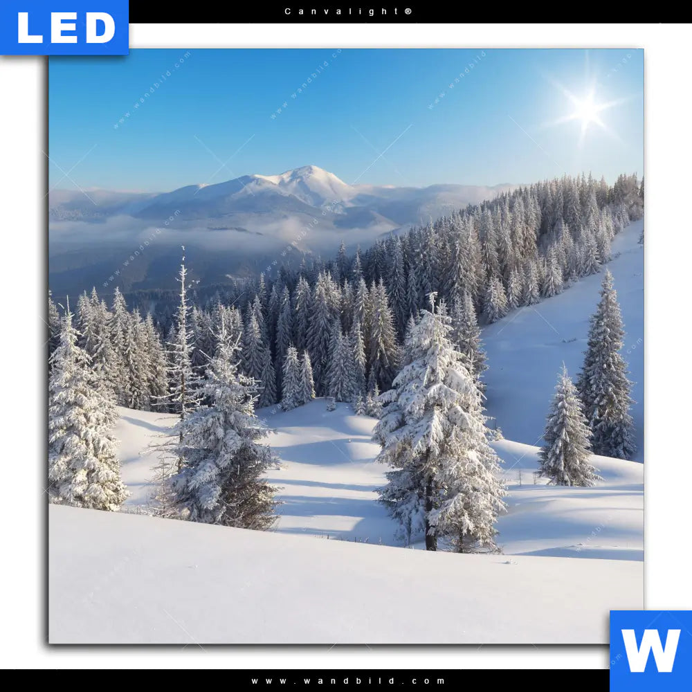 Canvalight® Leuchtbild | Berge und Wälder in Schnee | Quadrat