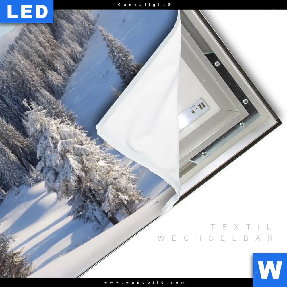 LED-Textilrahmen-Bild mit austauschbarem Landschaften, Winter Textil-Druck (Wechselbild)