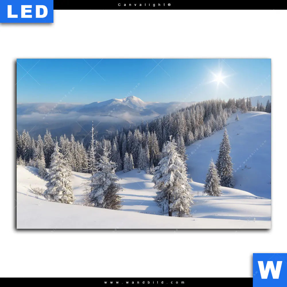 Canvalight® Leuchtbild | Berge und Wälder in Schnee | Querformat