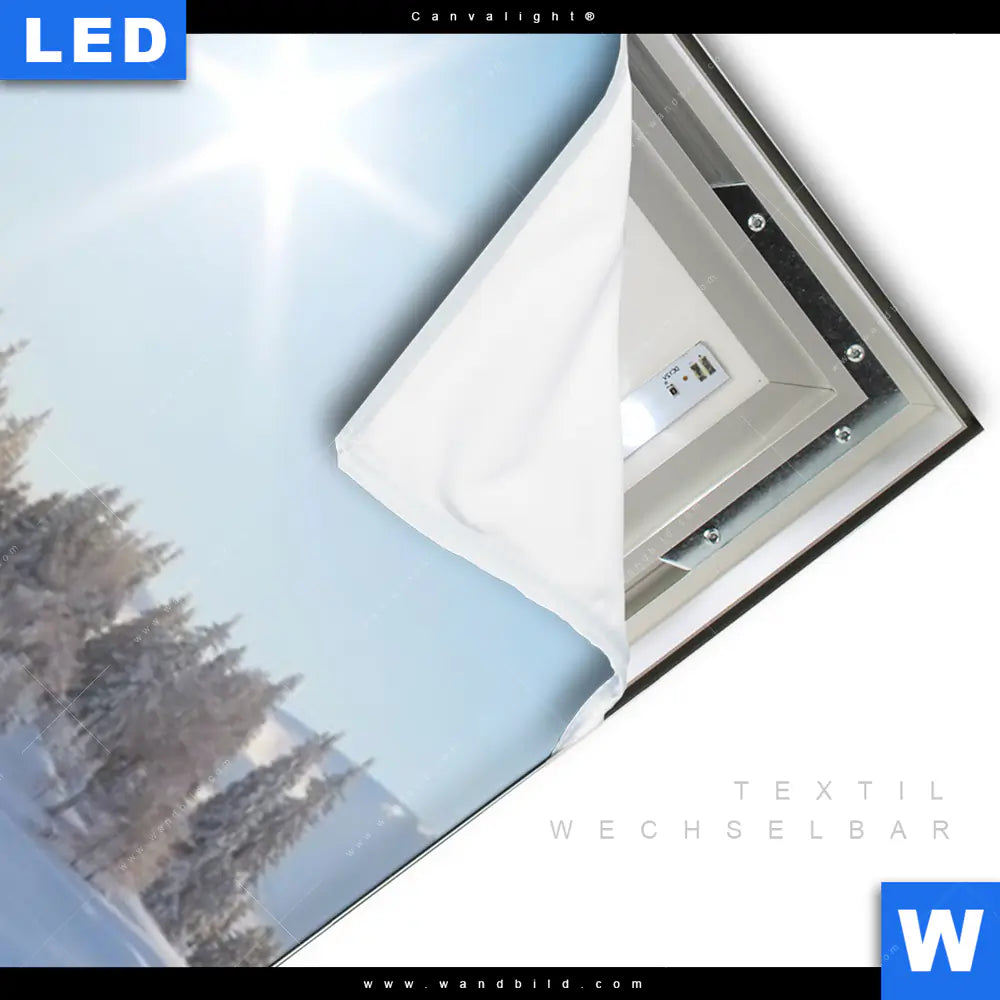 LED-Textilrahmen-Bild mit austauschbarem Landschaften, Winter Textil-Druck (Wechselbild)