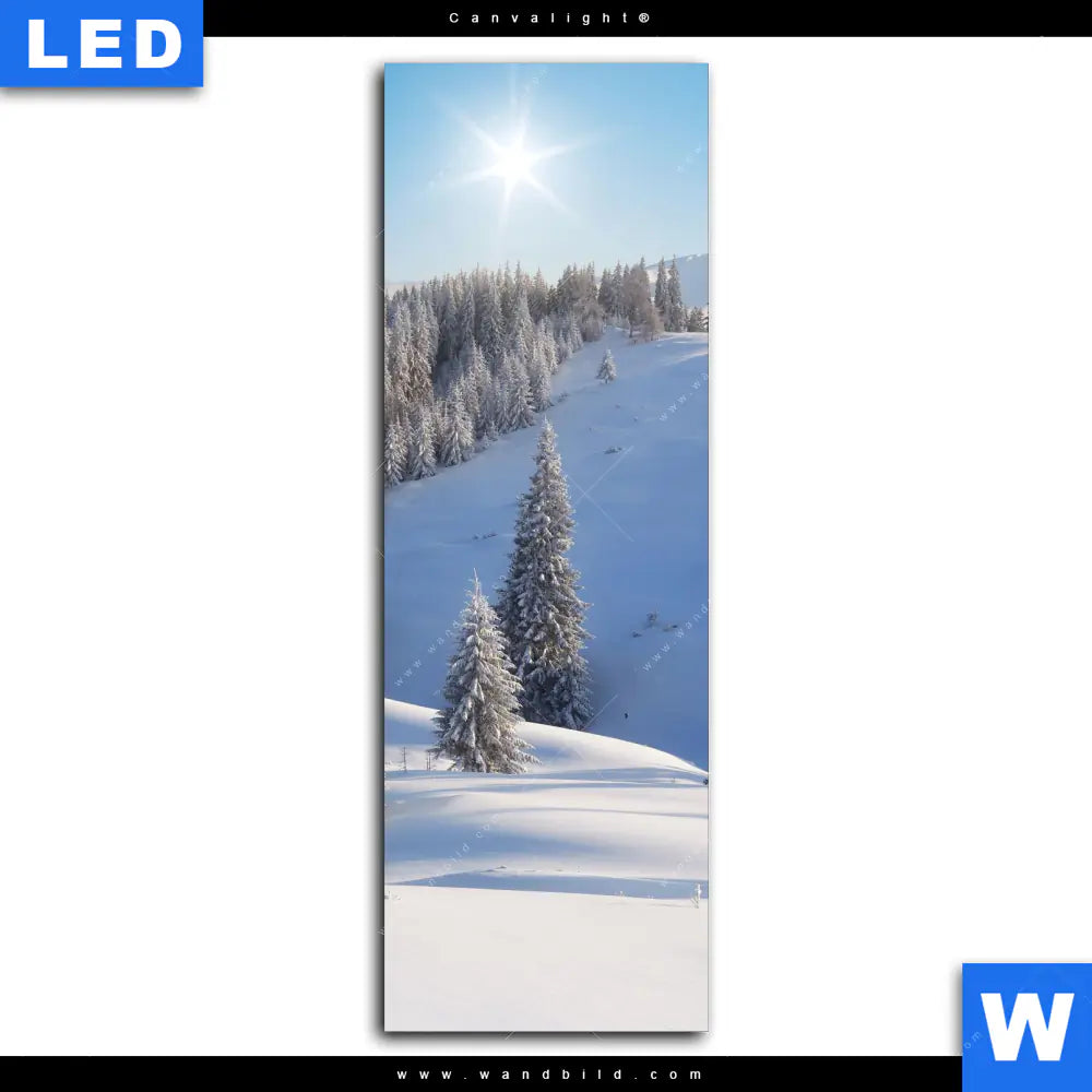 Canvalight® Leuchtbild | Berge und Wälder in Schnee | Schmal