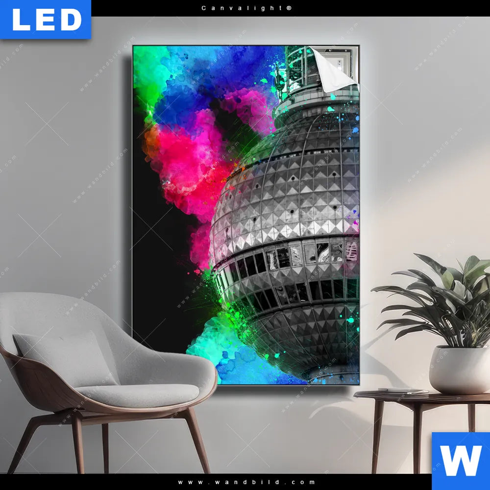 Canvalight® TEX Leuchtbild | Berliner Fernsehturm Pop Art No.1 | Hochformat