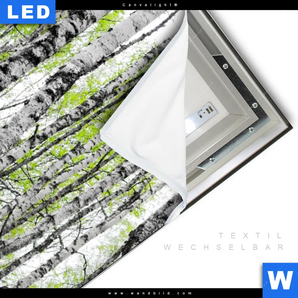 Canvalight® TEX Leuchtbild | Birkenwald | Hochformat