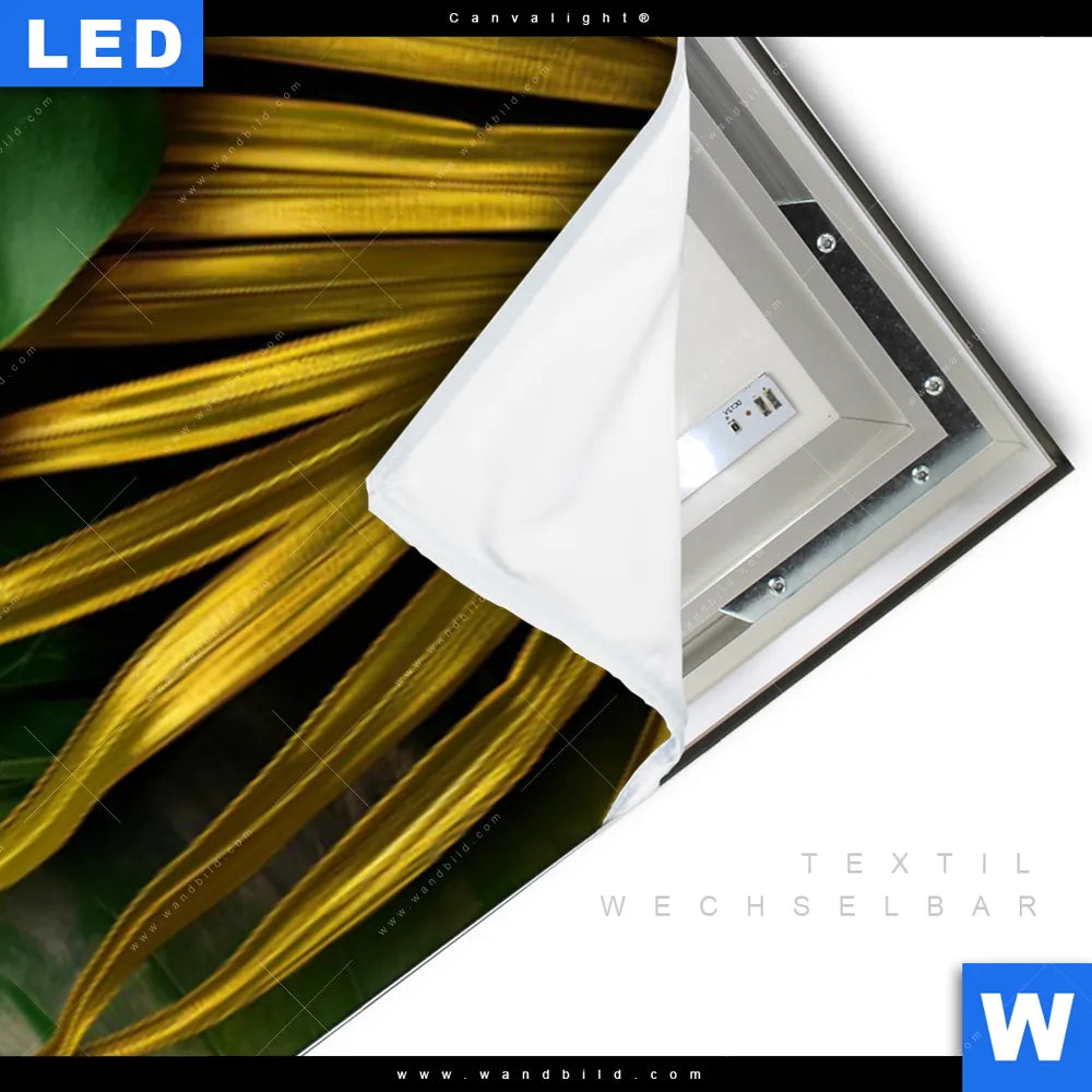 LED-Textilrahmen-Bild mit austauschbarem Blumen - Botanik, Muster - Texturen Textil-Druck (Wechselbild)