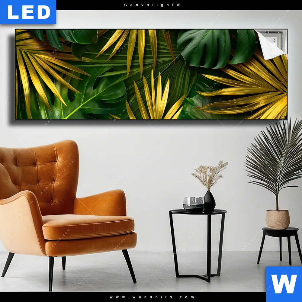 Canvalight® Leuchtbild | Blätter Gold Grün | Panorama