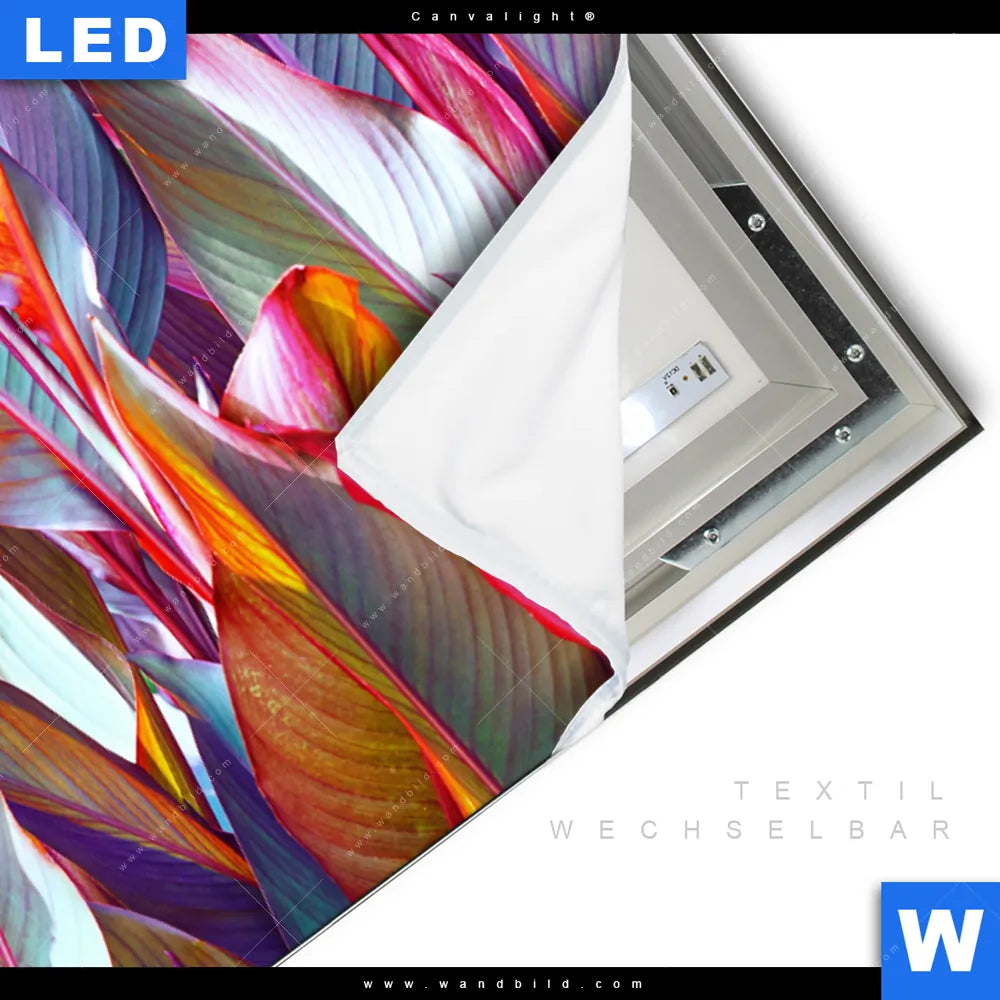 Canvalight® TEX Leuchtbild | Blätter in bunten Farben | Querformat