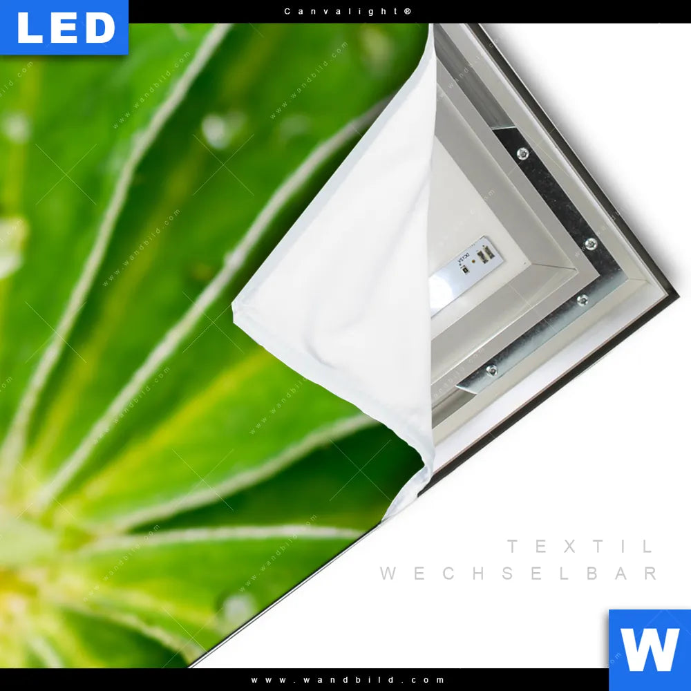 Canvalight® TEX Leuchtbild | Blatt mit Wassertropfen | Panorama