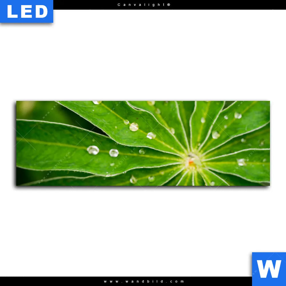 Canvalight® Leuchtbild | Blatt mit Wassertropfen | Panorama