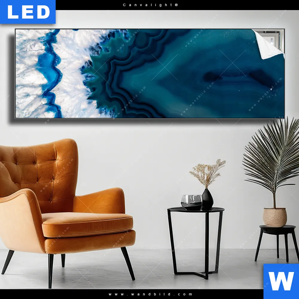 Canvalight® Leuchtbild | Blauer Achat | Panorama