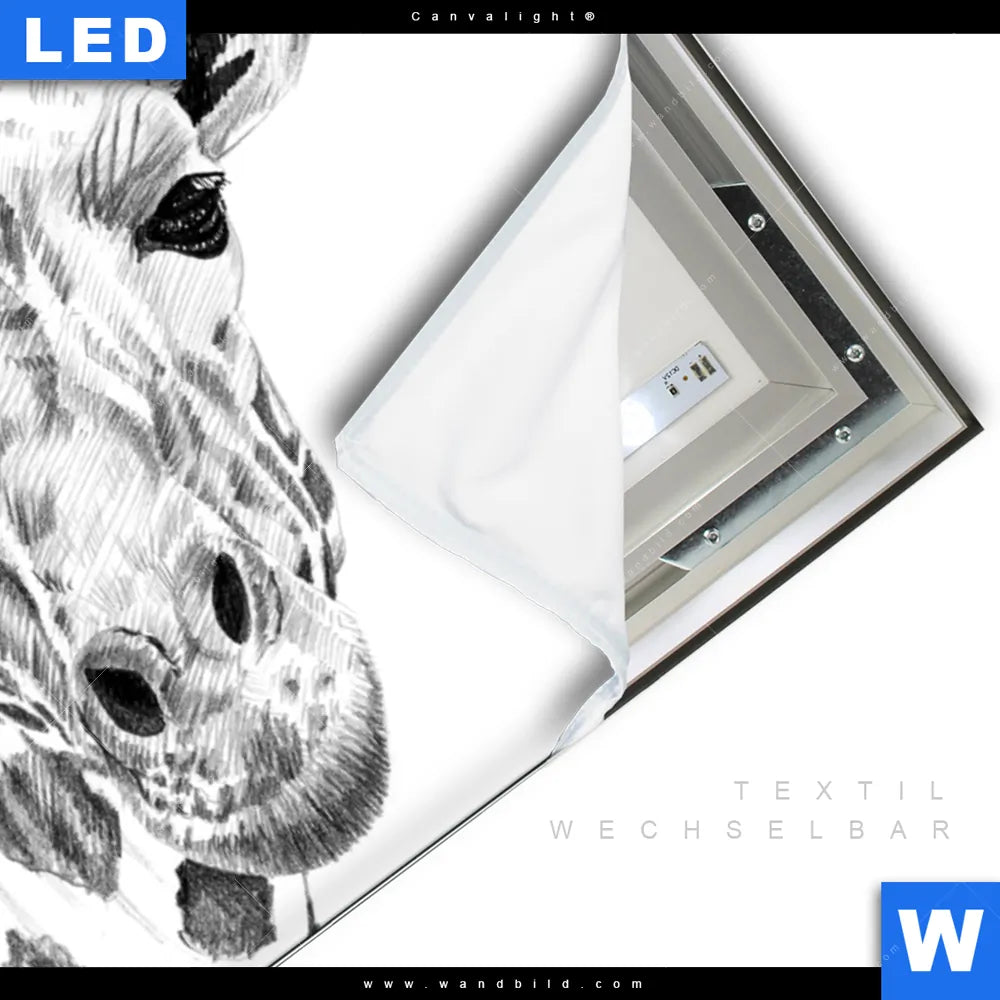 Canvalight® TEX Leuchtbild | Bleistiftzeichnung Giraffe | Querformat
