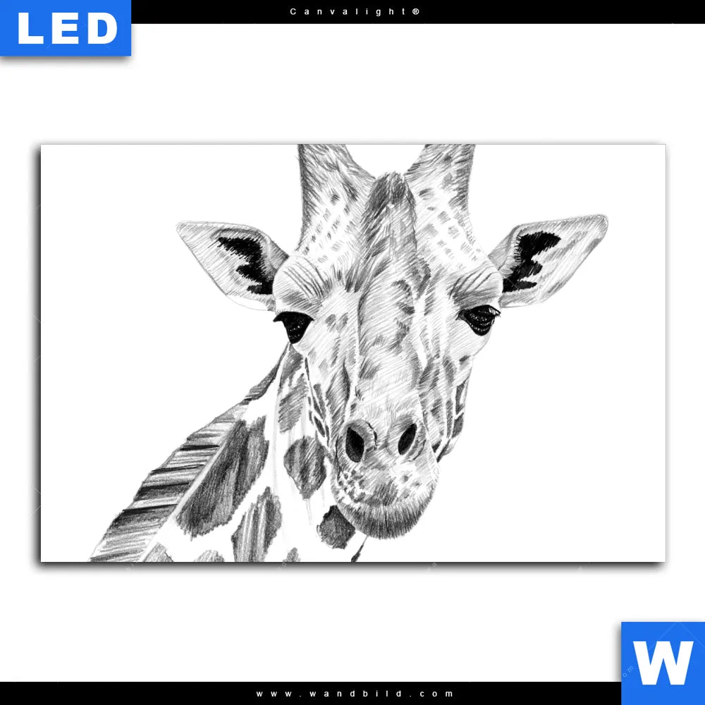 Canvalight® Leuchtbild | Bleistiftzeichnung Giraffe | Querformat