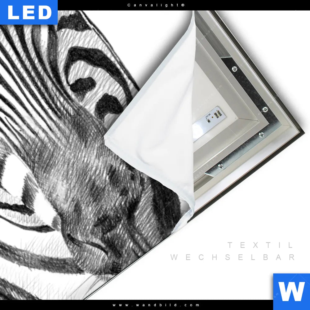 Canvalight® TEX Leuchtbild | Bleistiftzeichnung Zebra | Querformat