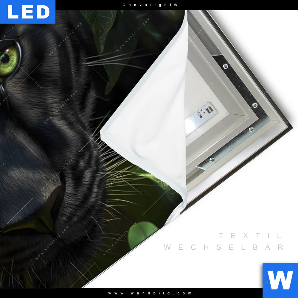 Canvalight® TEX Leuchtbild | Blick des Panthers | Querformat