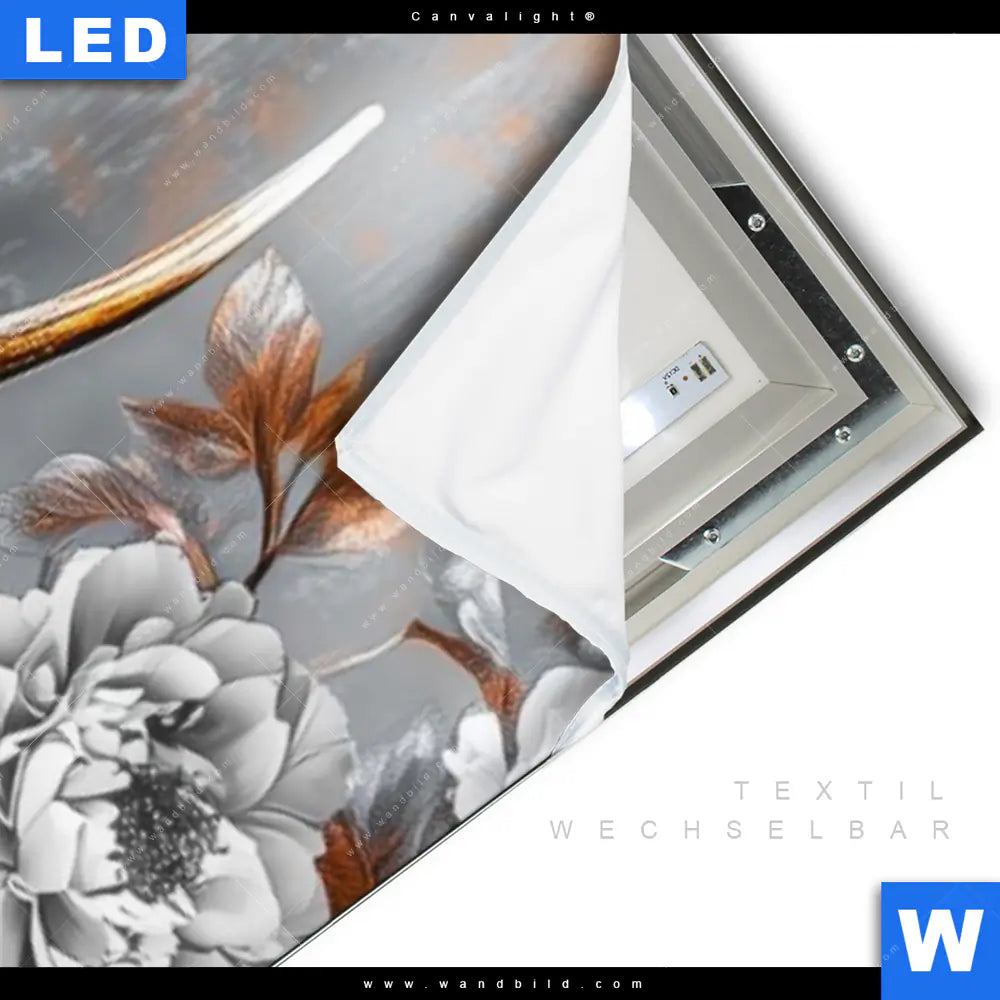 LED-Textilrahmen-Bild mit austauschbarem Tierwelt, Blumen - Botanik Textil-Druck (Wechselbild)