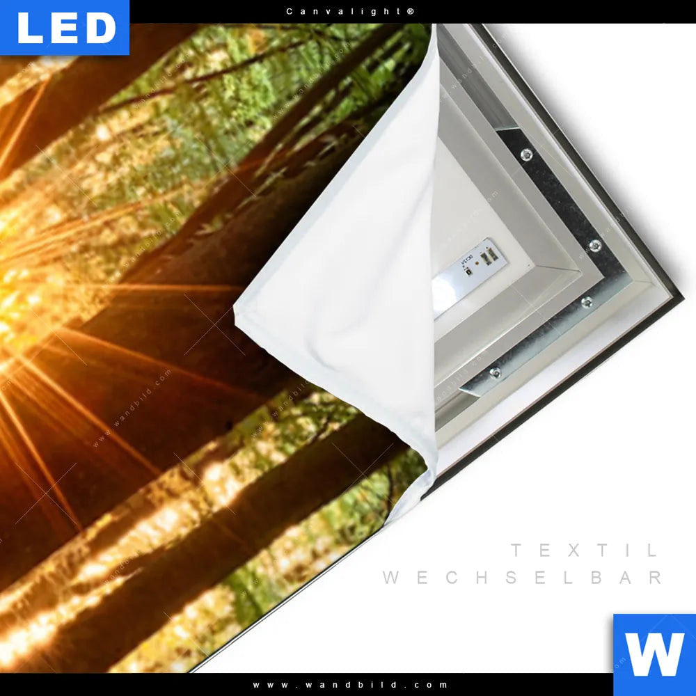 LED-Textilrahmen-Bild mit austauschbarem Blumen - Botanik, Landschaften, Wald - Bäume Textil-Druck (Wechselbild)