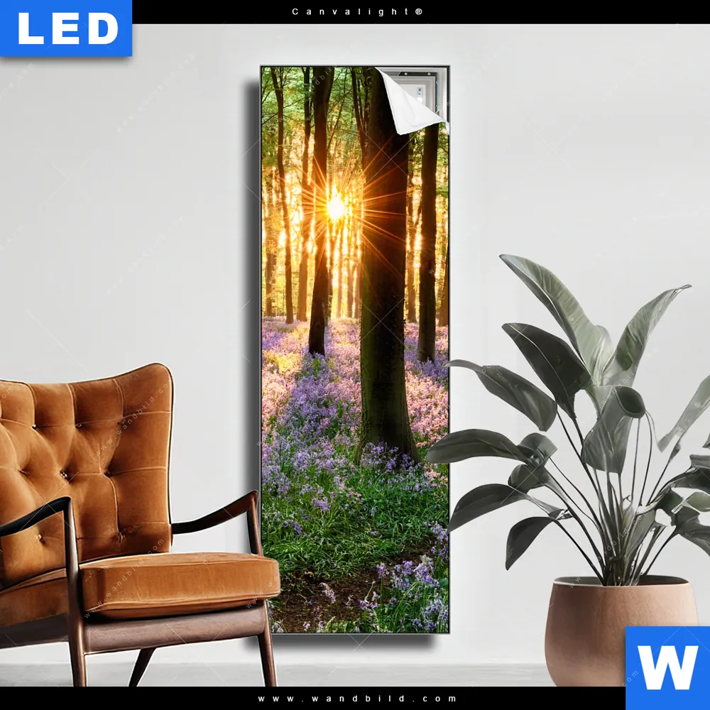 Canvalight® Leuchtbild | Blühender Wald bei Sonnenaufgang | Schmal