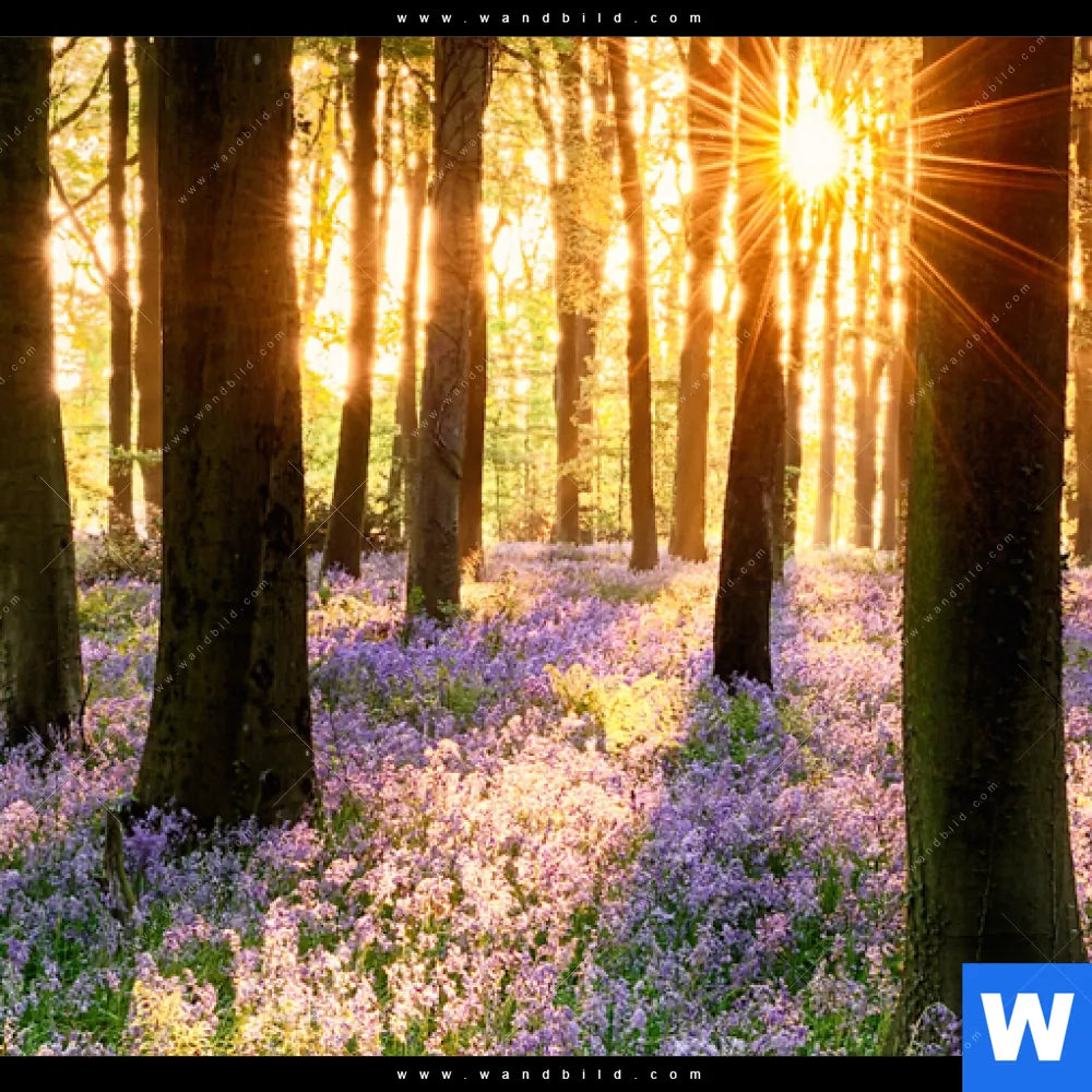 Canvalight® TEX Leuchtbild | Blühender Wald bei Sonnenaufgang | Schmal