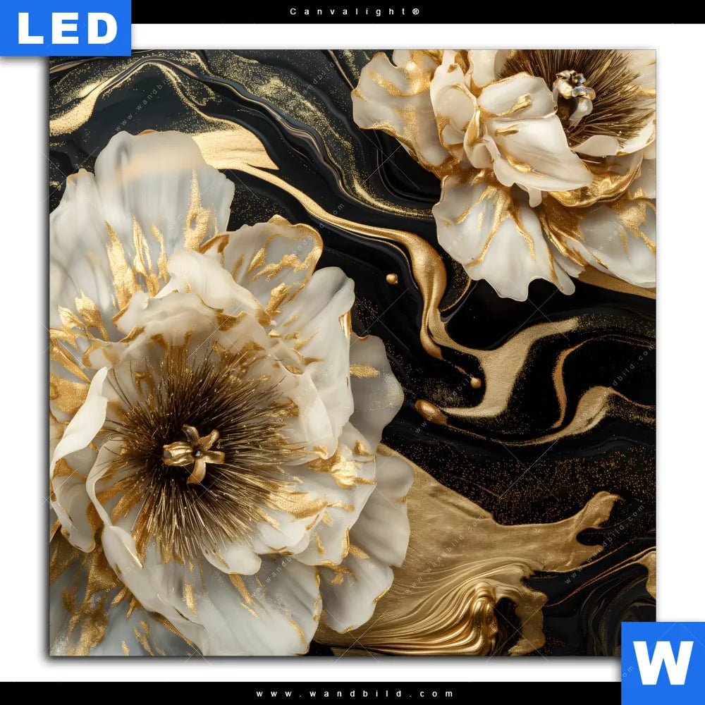Canvalight® Leuchtbild | Blüten Gold Weiß Schwarz | Quadrat