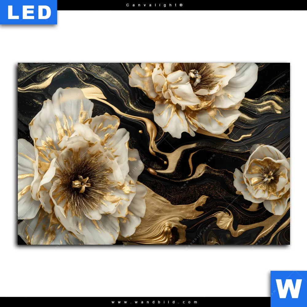 Canvalight® Leuchtbild | Blüten Gold Weiß Schwarz | Querformat