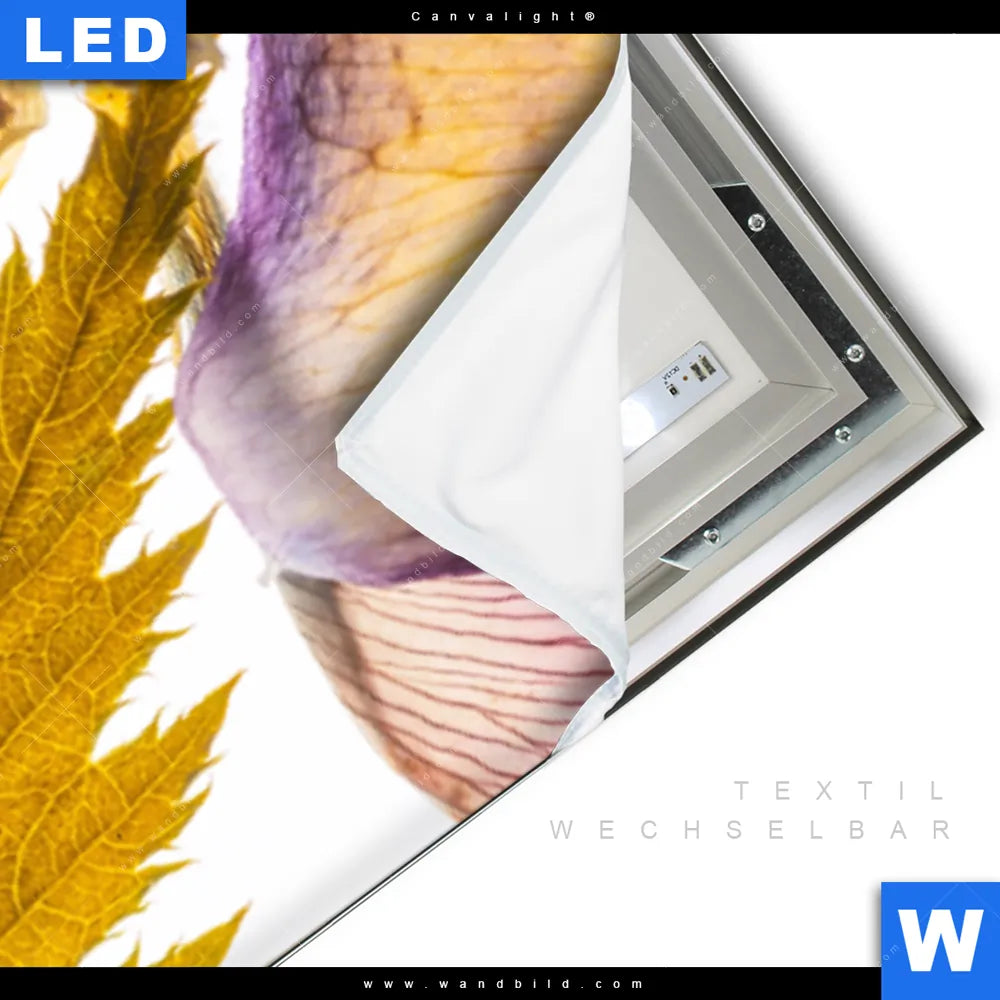 LED-Textilrahmen-Bild mit austauschbarem Blumen - Botanik Textil-Druck (Wechselbild)