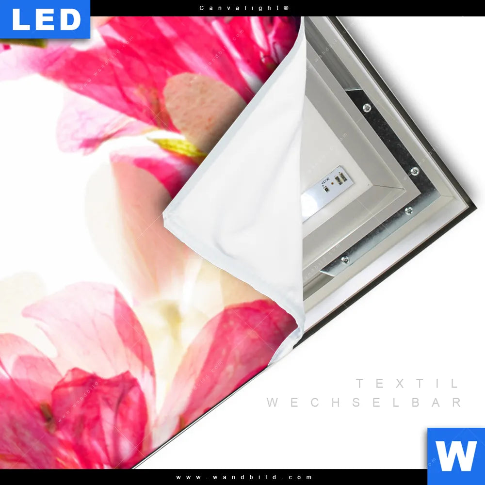 LED-Textilrahmen-Bild mit austauschbarem Blumen - Botanik Textil-Druck (Wechselbild)