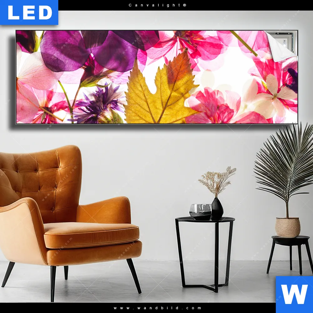 Canvalight® TEX Leuchtbild | Blumen Collage No.2 | Panorama