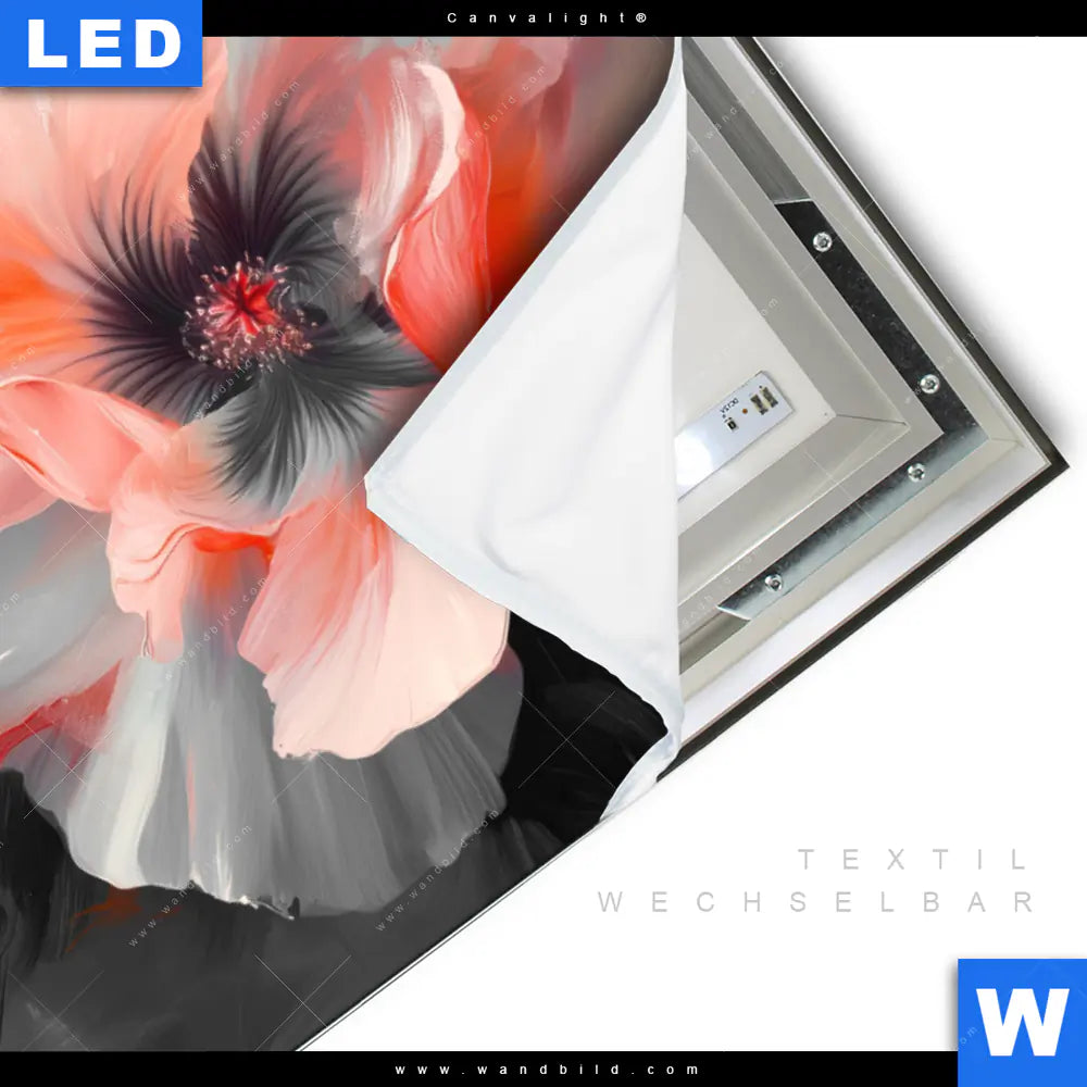 LED-Textilrahmen-Bild mit austauschbarem Blumen - Botanik Textil-Druck (Wechselbild)