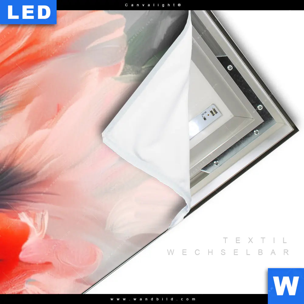 LED-Textilrahmen-Bild mit austauschbarem Blumen - Botanik Textil-Druck (Wechselbild)