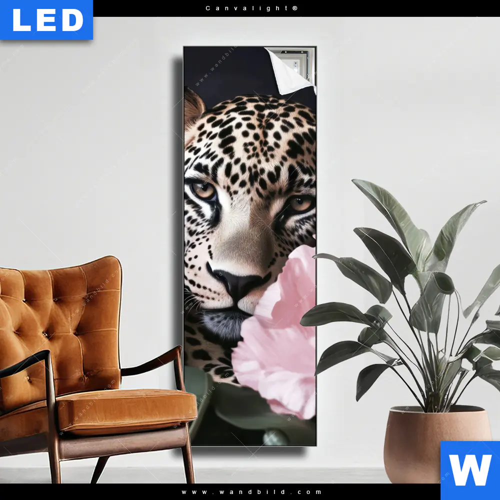 Canvalight® Leuchtbild | Blumen und Raubkatzenmagie | Schmal
