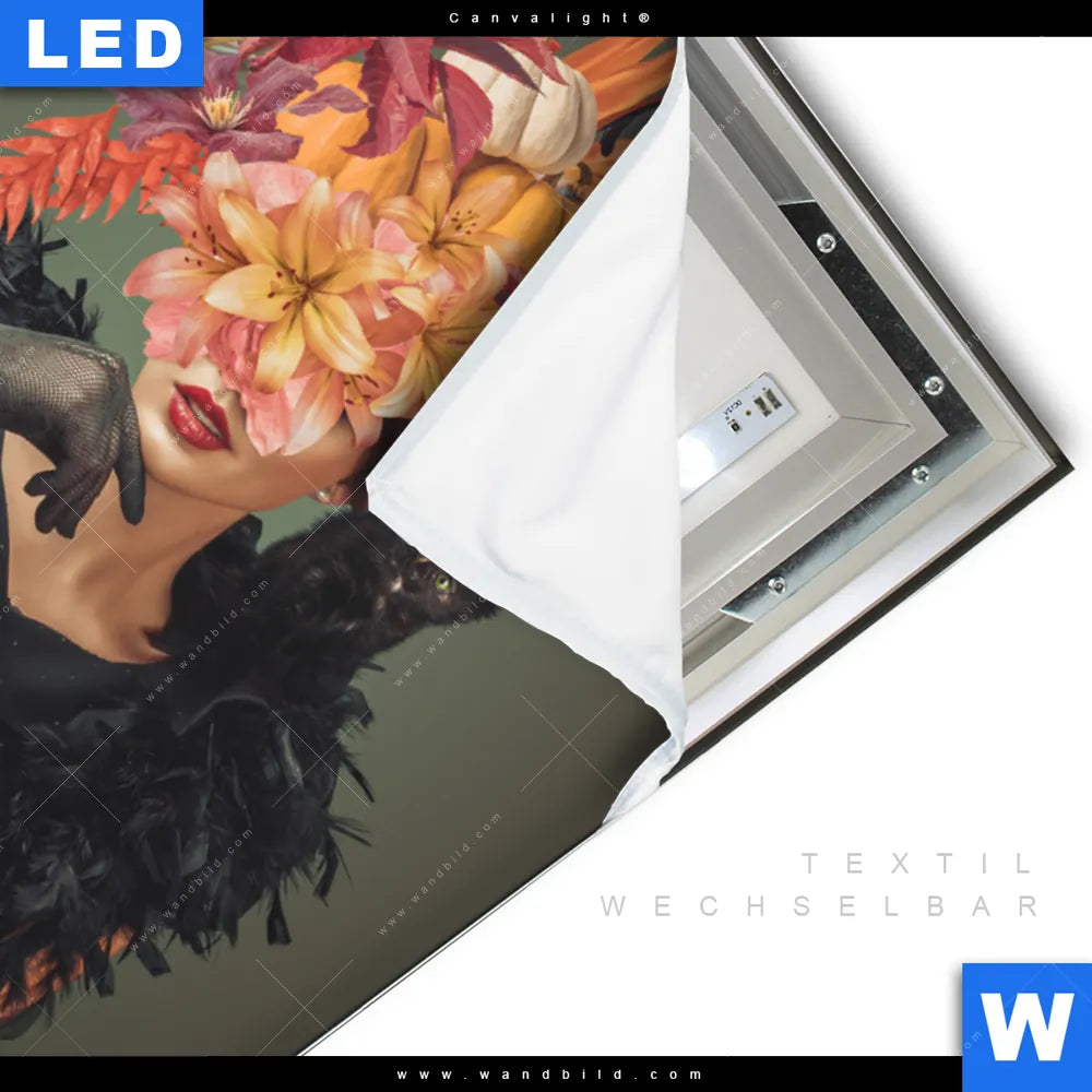 LED-Textilrahmen-Bild mit austauschbarem Porträts - Menschen, Blumen - Botanik Textil-Druck (Wechselbild)