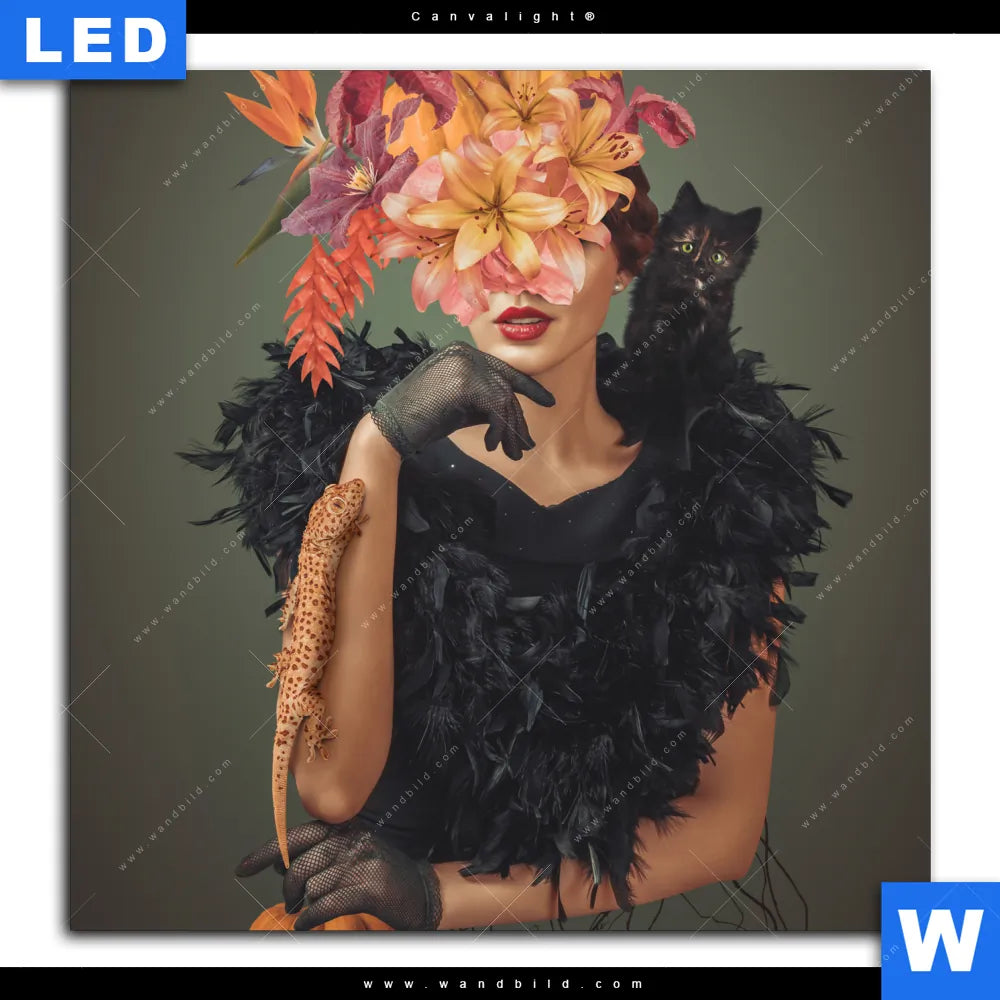 Canvalight® TEX Leuchtbild | Blumenportrait einer Frau | Quadrat