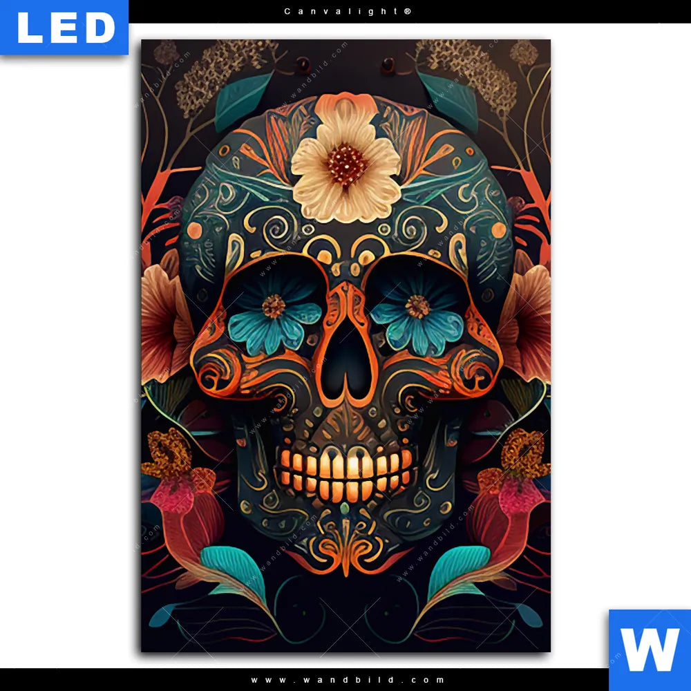 Canvalight® Leuchtbild | Blumenschädel schwarz | Hochformat