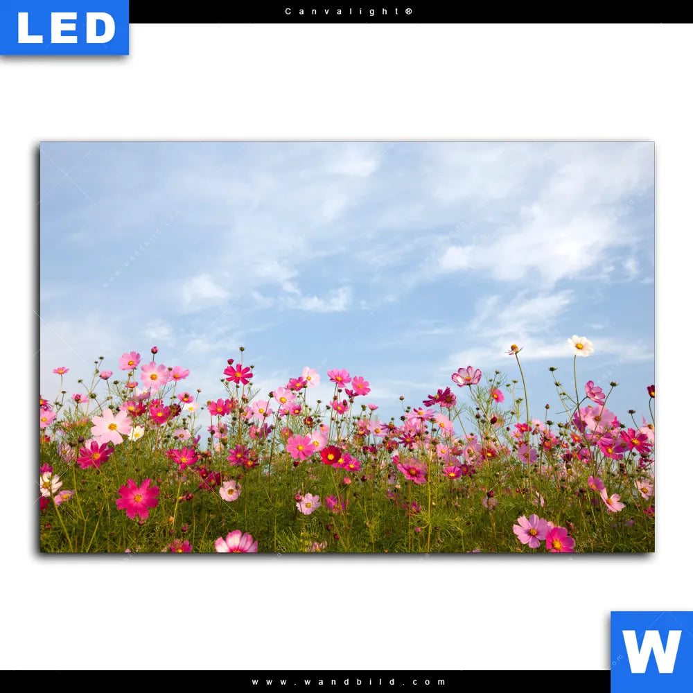 Canvalight® Leuchtbild | Blumenwiese bei strahlend blauem Himmel | Querformat