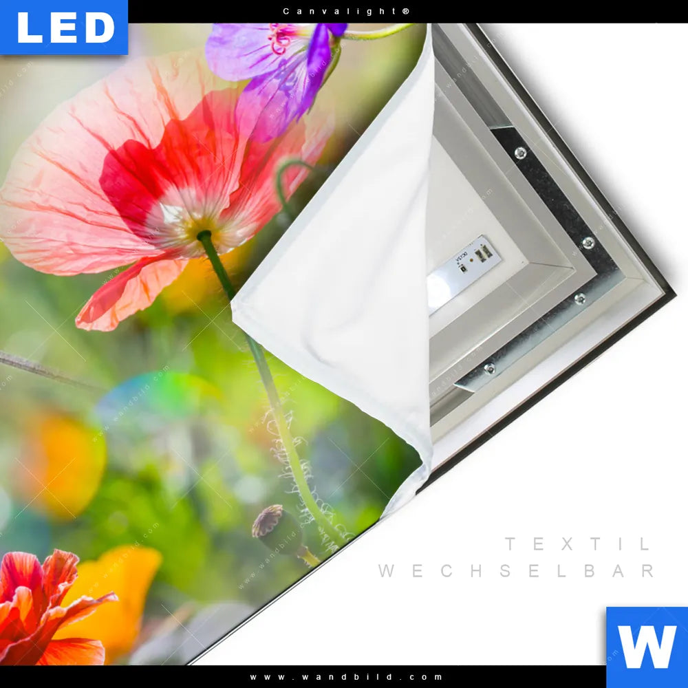 LED-Textilrahmen-Bild mit austauschbarem Landschaften, Blumen - Botanik Textil-Druck (Wechselbild)